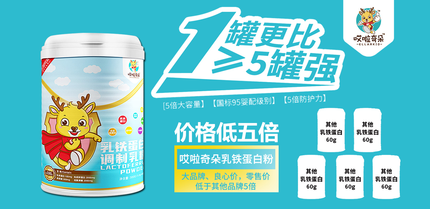 品牌名稱:哎啦奇朵 主營產品:哎啦奇朵ELLARKID乳鐵蛋白 品牌特色:母嬰新國貨品牌