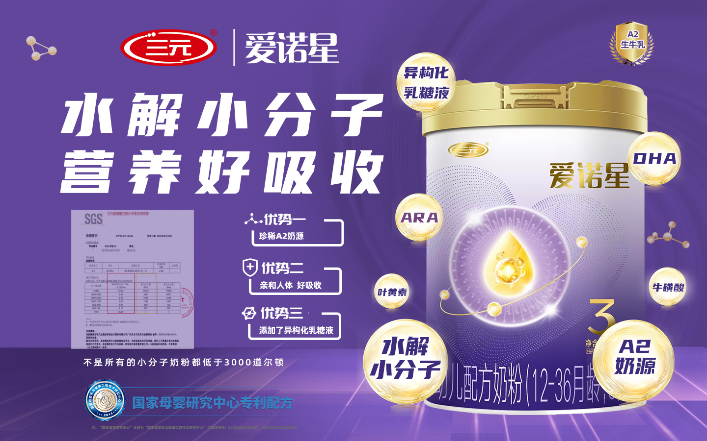 優(yōu)質的營養(yǎng)是成長健康的不可或缺!三元愛諾星幼兒配方奶粉(12-36月齡,3段)強勢來襲,于一眾同類產品中快速脫穎而出,熱賣終端,品質彰顯!更專業(yè)更均衡,更美味更健康,成長有它更出色哦!