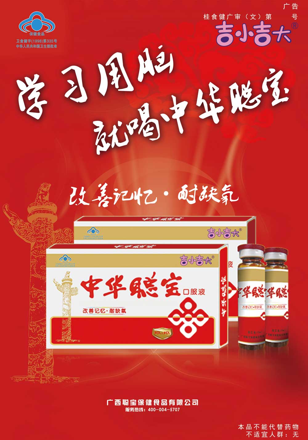 廣西聰寶保健品有限公司始創(chuàng)于1997年,主要從事養(yǎng)腦護腦類保健品“中華聰寶”口服液的研發(fā)、生產(chǎn)和銷售,目前品牌價值1000萬元人民幣。創(chuàng)始之初,一直致力于研究廣西純天然中草植物精華與現(xiàn)代生物技術的有機結合,并順應現(xiàn)代都市人心目中所追求的——對未來健康產(chǎn)品“綠色、時尚”的理念。