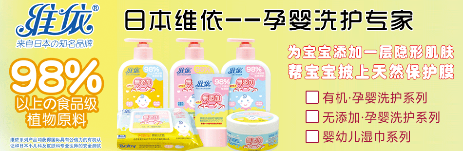 在上世紀的1983年,DAIWA日本大和株式會社在崇尚綠色、環保、安全和有著嚴謹體制、高要求、高標準的日本正式成立,同時設立了日本維依藥品研究所(株),主要研發和生產醫院專用的消毒清潔用品和老年人專用的日常護理用品及食品,成為了日本各大醫院的主要供應商。1995年,成功研發了孕產婦和嬰幼兒專用的護理用品及食品,發展到今天,維依牌孕嬰系列已經成為日本市場的主流產品。一直以來,日本大和株式會社始終堅持做健康、綠色、環保、天然、無添加、安全的高品質專業孕嬰產品,不隨波逐流,堅持杜絕使用礦物質原料和動物原料及化學合成原料,不適用動物實驗及放射線殺菌的產品,并與獲得國際有機認證機構認證的歐洲各大有機農場簽訂了長年的產品原料定向供應合同,確保了維依產品的高品質和安全性。維依牌孕嬰系列產品均已獲得具有公信力的國際權威有機認證機構的認證,亦通過了日本各大醫院小兒科和皮膚科專業醫師的測試認證。
