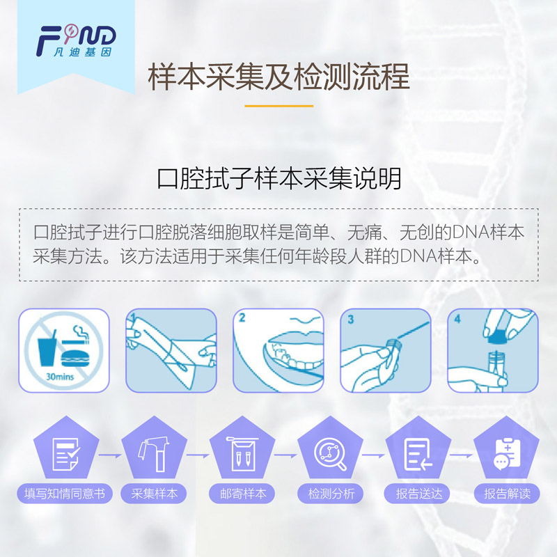凡迪基因在醫學檢驗服務領域以臨床應用和推廣服務為主,擁有成都凡迪醫學檢驗所、山東凡迪醫學檢驗所、北京凡迪醫學實驗室等第三方獨立醫學檢驗機構。公司已建立了300人規模的專業服務團隊,累積服務臨床客戶數十萬人次,主要致力于向臨床和公眾推廣安全、準確、快速的無創產前胎兒DNA檢測(NIPT)、葉酸代謝障礙遺傳分析、單基因遺傳病基因檢測、胚胎植入前遺傳學篩查/診斷(PGS/PGD)、染色體異常檢測、新生兒遺傳代謝病檢測等優生優育相關的檢測服務;以及腫瘤靶向藥物、腫瘤化療藥物、抗高血壓藥物、抗高血糖藥物、抗高血脂藥物等個體化藥物基因檢測服務項目。