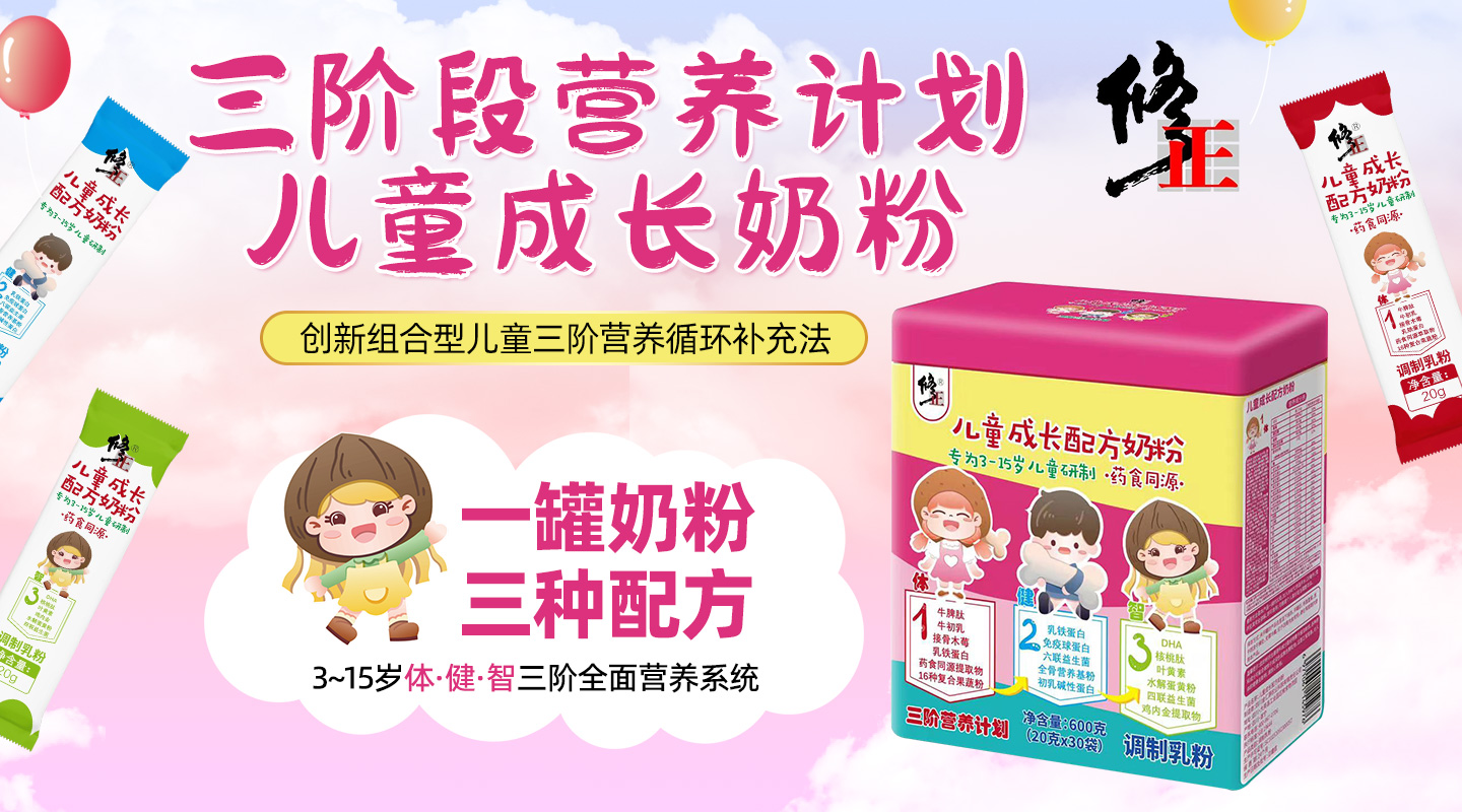 品牌名稱:修正 主營產品:修正三階段營養計劃兒童奶粉 品牌特色:一罐奶粉 三種配方