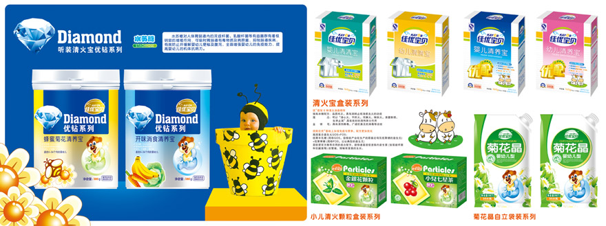 佳優寶堅持以顧客為中心、以市場為導向,實現共贏的經營理念。公司依托雄厚的技術研發力量,針對寶寶不同年齡段的生長發育需求,成功開發了 “佳優寶貝清火寶”、“佳優寶貝營養米粉”、“佳優寶貝葡萄糖” 、“佳優寶貝菊花晶”四大系列40余個品種。經過多年的發展,以為中國寶寶生產健康的嬰幼兒食品為己任,形成了由覆蓋全國的優質經銷商組成的全國性營銷網絡,覆蓋逾百余地市和逾千縣鎮,憑借優質的產品和強大的營銷管理能力,佳優寶獲得了高速穩健的成長成為業內的領先企業。