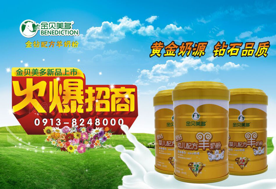 品牌名稱:金貝美多 主營產品:金貝美多羊奶粉誠邀加盟 品牌特色:健康,營養全面