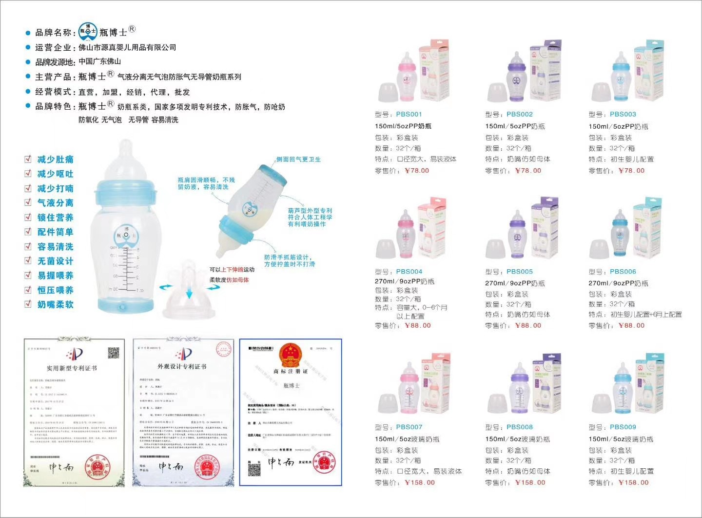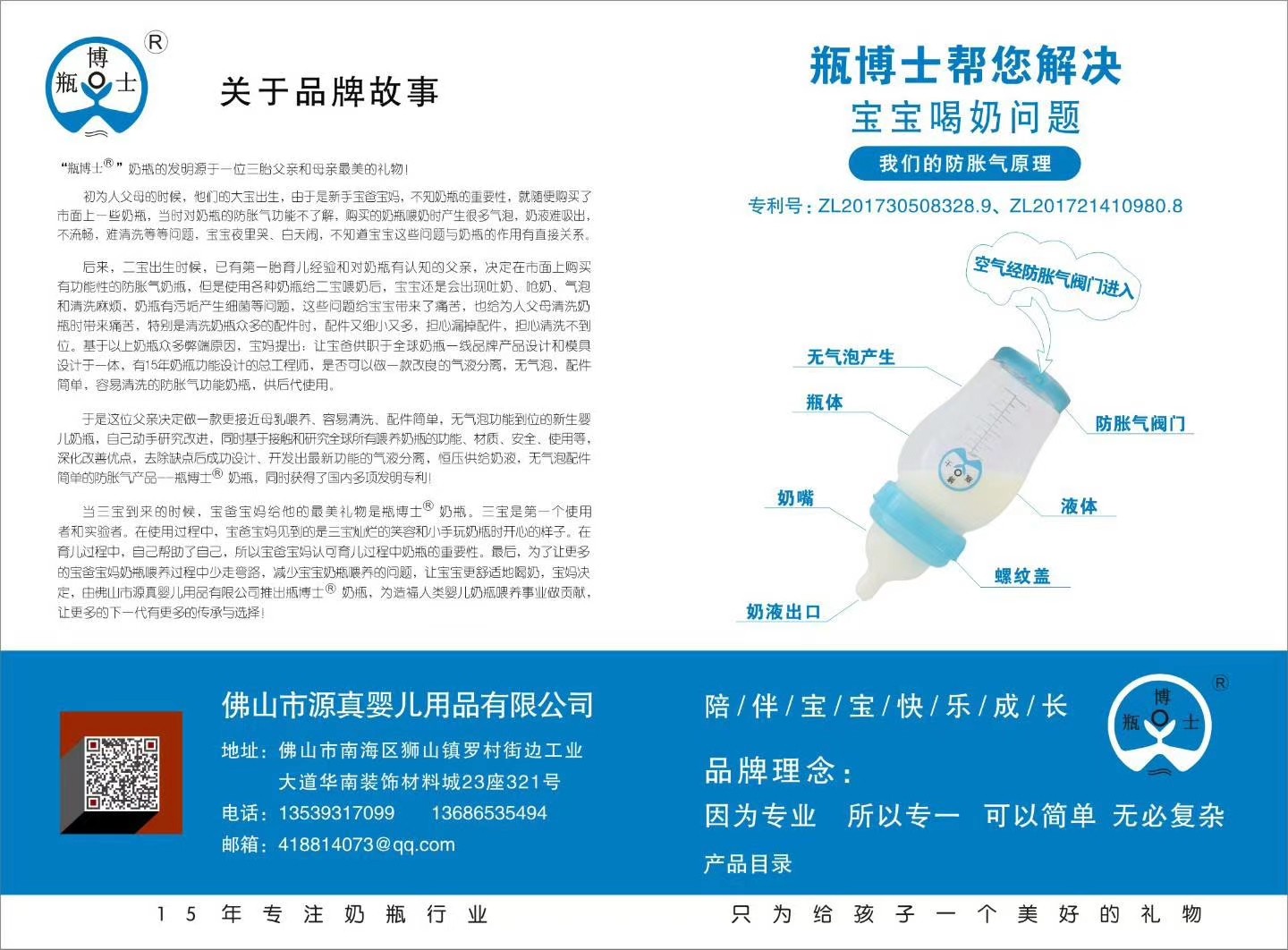 佛山市源真嬰兒用品有限公司,是一家集研發(fā)、生產(chǎn)、銷售為一體的現(xiàn)代化企業(yè),旗下品牌“瓶博士”,專注奶瓶、奶嘴等母嬰產(chǎn)品的研發(fā)及生產(chǎn),堅持以品質(zhì)樹立口碑,持續(xù)開發(fā)和創(chuàng)新,為億萬家庭的寶寶提供時尚、健康、安全、舒適的生活用品。