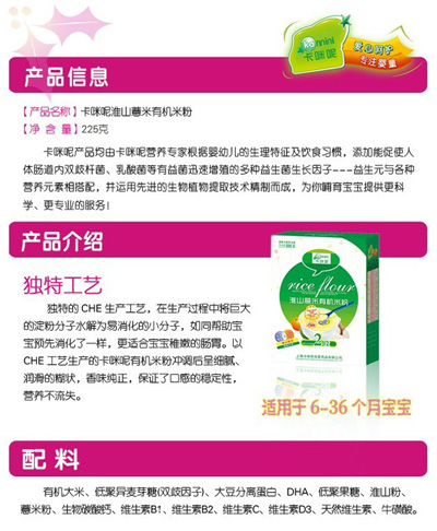 您所在位置:首頁>上海卡咪呢母嬰用品有限公司>卡咪呢淮山薏米有機米粉