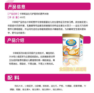 • 卡咪呢益生元護腸嬰幼兒營養米粉