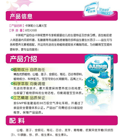 卡咪呢小兒板藍根顆粒是上?ㄟ淠啬笅胗闷酚邢薰酒煜庐a品,專為嬰幼兒設計,專業、安全,幫助寶寶可以預防感冒抵抗病毒,是廣大父母育兒的好幫手?ㄟ淠匦喊逅{根顆粒不含任何色素、防腐劑,安全放心。