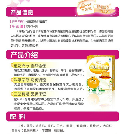 上海卡咪呢母嬰用品有限公司主營母嬰營養(yǎng)保健食品,產(chǎn)品原料來自有機農(nóng)業(yè)生產(chǎn)體系或野生天然產(chǎn)品,通過國家相關(guān)有機食品認證機構(gòu)的嚴格檢測認證,現(xiàn)面向全國空白市場區(qū)域誠招代理商加盟。