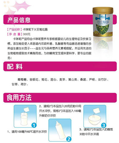 卡咪呢小兒板藍根顆粒是上?ㄟ淠啬笅胗闷酚邢薰酒煜庐a品,專為嬰幼兒設計,專業、安全,幫助寶寶可以預防感冒抵抗病毒,是廣大父母育兒的好幫手。卡咪呢小兒板藍根顆粒不含任何色素、防腐劑,安全放心。
