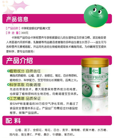 您所在位置:首頁>上海卡咪呢母嬰用品有限公司>卡咪呢金銀花護腸清火寶