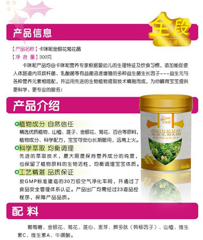 卡咪呢有機(jī)米粉系列是專(zhuān)為中國(guó)寶寶設(shè)計(jì)的營(yíng)養(yǎng)輔食,選用有機(jī)大米,科學(xué)搭配維生素AD等維生素,還特別添加牛磺酸、DHA、AA等有助智力發(fā)育的營(yíng)養(yǎng)成分,富含15種營(yíng)養(yǎng)素。現(xiàn)上海卡咪呢母嬰用品有限公司面向全國(guó)空白市場(chǎng)區(qū)域誠(chéng)招卡咪呢有機(jī)米粉代理商。