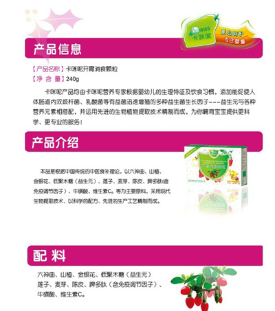 上海卡咪呢母嬰用品有限公司主營母嬰營養(yǎng)保健食品,產(chǎn)品原料來自有機(jī)農(nóng)業(yè)生產(chǎn)體系或野生天然產(chǎn)品,通過國家相關(guān)有機(jī)食品認(rèn)證機(jī)構(gòu)的嚴(yán)格檢測認(rèn)證,現(xiàn)面向全國空白市場區(qū)域誠招代理商加盟。