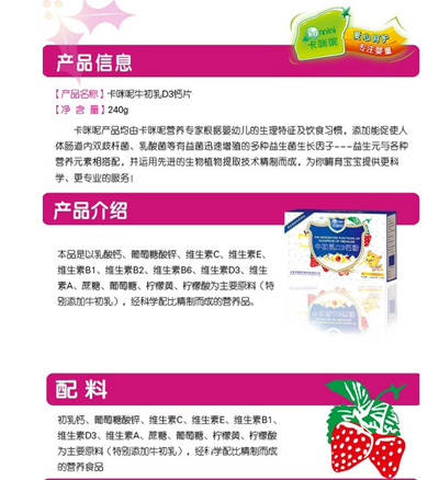 卡咪呢有機米粉系列是專為中國寶寶設計的營養輔食,選用有機大米,科學搭配維生素AD等維生素,還特別添加牛磺酸、DHA、AA等有助智力發育的營養成分,富含15種營養素。現上海卡咪呢母嬰用品有限公司面向全國空白市場區域誠招卡咪呢有機米粉代理商。