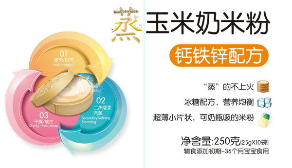 蒸汽滾筒干燥法:通過蒸汽滾筒工藝,鎖住米香和營養,減少了寶寶上火現象;