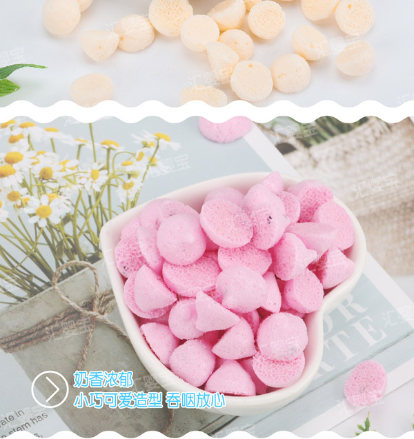 匯嬰寶速溶奶餅法國特殊工藝,采用純蛋白制粉為主要原料,不添加淀粉,營養價值高;添加脫脂酸奶粉,營養更全面,添加海藻糖和鮮果泥成分,口味香甜,添加復合益生菌,調節腸道菌群,維持腸道健康。
