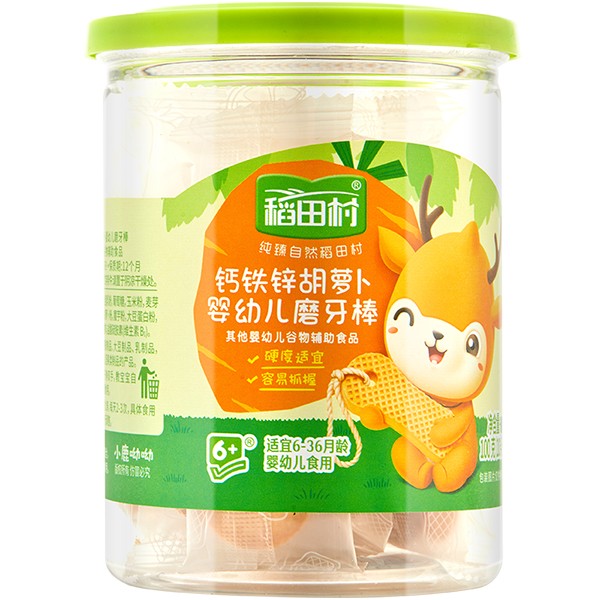 您所在位置:首頁>北京稻田村食品有限公司>稻田村鈣鐵鋅磨牙棒-胡蘿卜