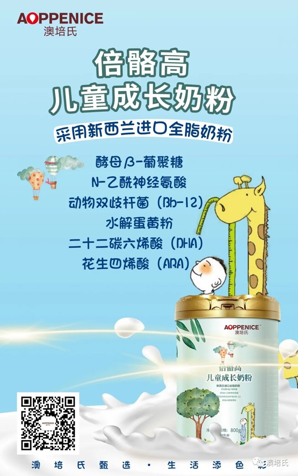 澳培氏-倍骼高兒童成長(zhǎng)奶粉為此次系列的主打產(chǎn)品之一。特別添加酵母β-葡聚糖、N-乙酰神經(jīng)氨酸、動(dòng)物雙歧桿菌(Bb-12)以及水解蛋黃粉成分,為兒童長(zhǎng)高補(bǔ)充營(yíng)養(yǎng)。