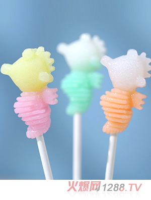 米唐たき海洋小分隊棒棒糖-海馬馬卡龍草莓味橙子味哈密瓜味多種口味兒童零食8g/支