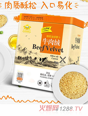 金盾愛嬰胡蘿卜牛肉絨:牛肉含豐富蛋白質、鋅、鐵,是腦部神經和智力發展重要營養。