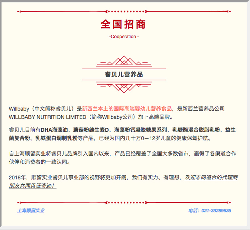 主營產(chǎn)品:Willbaby睿貝兒益生菌,乳鐵蛋白 產(chǎn)品(5個)新聞(9條)