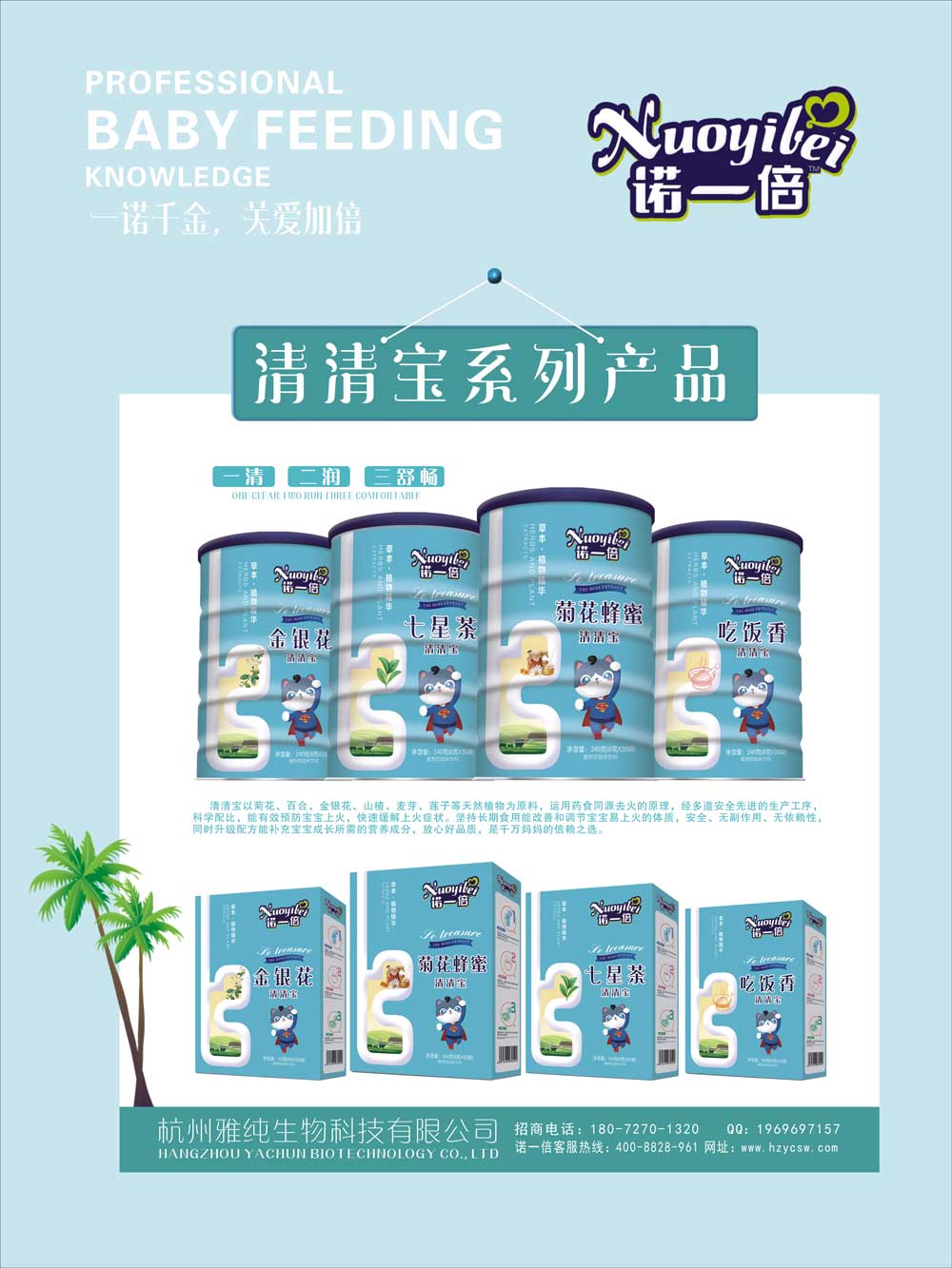 杭州雅純生物科技有限公司創建于2014年,數年來致力于中華傳統母嬰膳食營養的發展。公司秉承“專業呵護、健康未來”的企業宗旨,以“熱情、專業、真誠”的服務理念,為客戶提供市場管理、終端營銷、產品與促銷培訓等模塊的管理服務。取材純凈、配方安全,嚴謹的生產標準,科學的萃取工藝,精準無誤的每個環節,充分保留成分中的活性有機物質,以確保您和您的寶寶能享受更安全、更營養、更均衡的健康產品! 您的健康是我們的使命,您的滿意是我們的追求。我們將憑借雄厚的技術,專業的知識,為0-12歲成長中的孩子打下健康的基礎,為媽媽們傳播專業的營養知識與國際同步的健康育兒觀念。