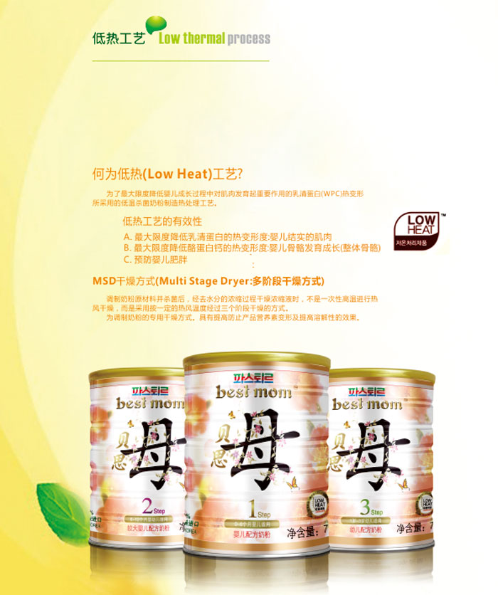 貝思母嬰兒奶粉是運(yùn)用先進(jìn)生產(chǎn)工藝選用優(yōu)質(zhì)奶源制作而成,韓國原裝進(jìn)口,其生產(chǎn)流程的每個(gè)環(huán)節(jié)都嚴(yán)格按照國家食品檢驗(yàn)標(biāo)準(zhǔn),質(zhì)量信得過,更安全更營養(yǎng)美味。