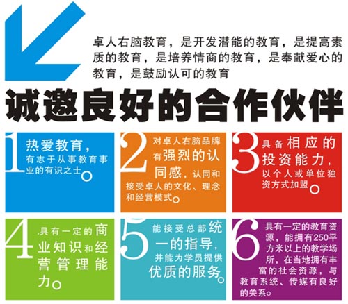 品牌名稱:卓人 主營產品:卓人教育誠邀加盟 品牌特色:專業 科學