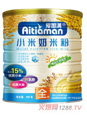 愛加滿奶米粉,有紫薯雜糧奶米粉、玉米奶米粉、小米奶米粉、乳清蛋白奶米粉、果蔬奶米粉,適合全段bao--bao食用。營養(yǎng)價值能夠滿足bao--bao的成長所需。同時米粉帶有的奶香味,讓習慣吃奶粉或者母乳的bao--bao更容易接受,輔食添加過程更順利。