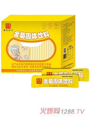 蔡氏名門金菊固體飲料,精選多種藥食同源植物為原料,地道選材,真材實料,更精心萃取其精華,科學配比!特別添加低聚果糖等,以精湛工藝加工而成,品質放心!易沖泡、無雜質,口感純正,守護成長!