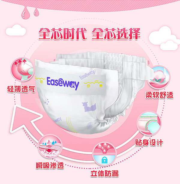 宜氏紙尿褲,采用3D打孔親膚層,打孔表層在皮膚和尿褲之間形成空氣通道,當(dāng)尿液接觸的時(shí)候,首先流入打孔通道中快速吸收,使皮膚接觸面始終保持干爽。使用輕巧透氣的新研發(fā)芯體,保證嬰兒屁股舒適干爽,讓寶寶的肌膚時(shí)刻保持充分呼吸。宜氏紙尿褲專為長(zhǎng)時(shí)間使用而設(shè)計(jì),保證嬰兒屁股舒適干爽,不會(huì)因長(zhǎng)期使用而造成斷裂,夜間長(zhǎng)效干爽。