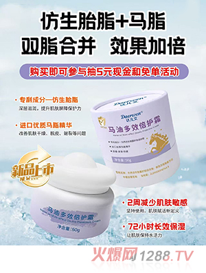 達兒文馬油多效倍護霜,全新解鎖「仿生胎脂 + 黃金馬脂」的奢潤組合,雙脂合并,效果加倍!只為給寶寶更接近天生的守護力。