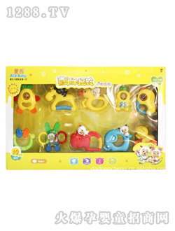 2.讓寶寶看一看、摸一摸、抓一抓、搖一搖,每款玩具能發聲,有益于吸引嬰兒的注意力,抓拿能促進嬰兒上肢肌肉發育和手眼協調。