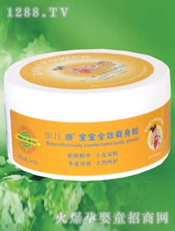 bao--bao皮膚嬌嫩,需要時時呵護。廣州天珍化妝品有限公司旗下的少兒康bao--bao全效爽身粉就很不錯,精選優質滑石粉,經嚴格高溫消毒,粉質細膩安全,不刺激bao--bao嬌嫩肌膚。