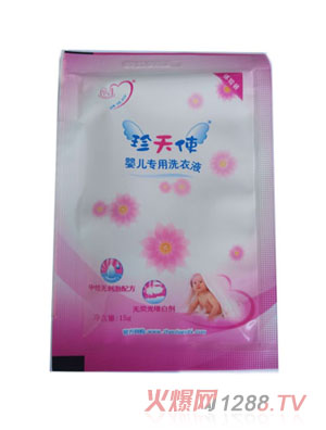 珍情,珍愛,珍天使。珍天使專用洗衣液選用具有生物降解性的原材料,不含磷,無色素、增稠劑、熒光增白劑、無機助洗劑、發泡劑,中性低泡配方,輕松漂洗,省省水省力。