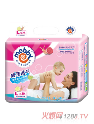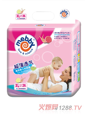 mebby超薄透氣嬰兒紙尿褲超強吸收力、超薄貼膚性、超舒適干爽性,深得bao--bao的喜愛,是媽媽選購紙尿褲的首選品牌。