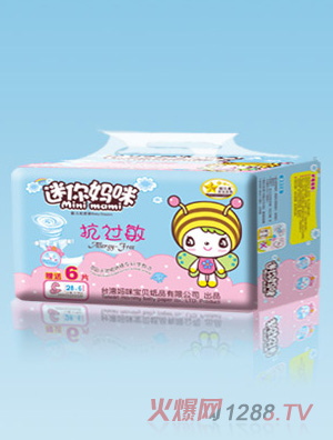 迷你媽咪紙尿褲包裝設計上,均有整齊統一的風格,以紅藍顏色為主色調,顯著的“抗guomi”產品特性醒目清晰,在可愛小蜜蜂的襯托下給人溫馨舒適的視覺效果。bao--bao喜愛,媽媽放心!