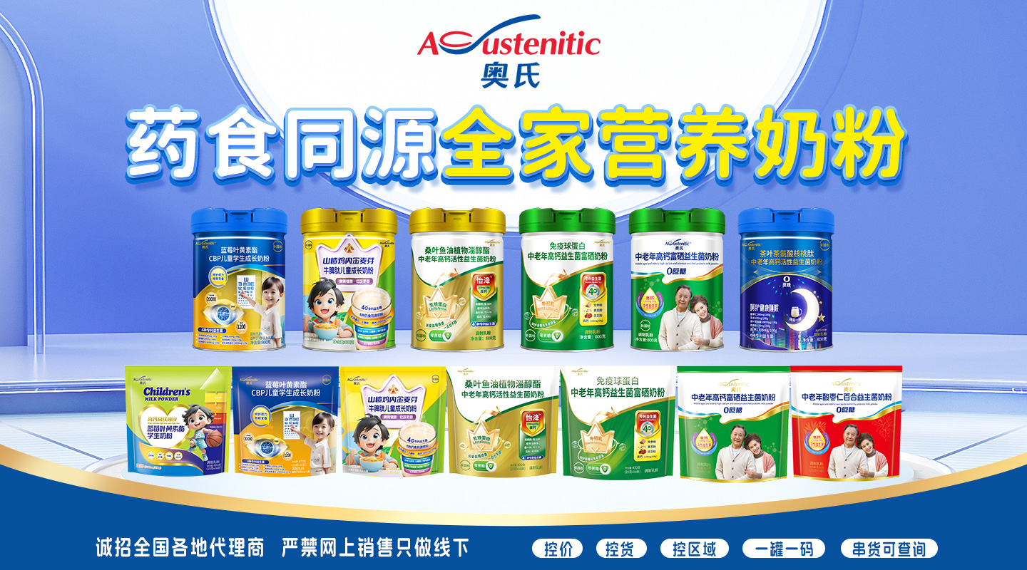 奧氏(Austenitic ) 是專注于藥食同源營養健康的奶粉品牌,品牌以“科學營養·健康齡距離”為核心理念,結合現代營養科技,打造符合健康需求的高端奶粉產品。