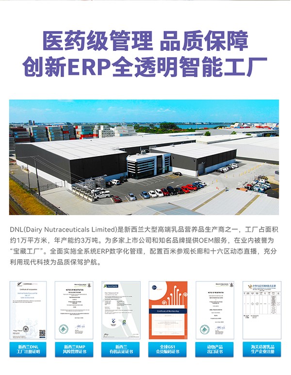 動力寶寶是新西蘭高端營養品品牌,嚴格按照新西蘭RMP風險管理程序和CGMP良好操作規范生產,是DNL將新西蘭豐富的天然營養資源與現代化科技相融合,研發生產而成,根據寶寶成長所需,以科學和專業為寶寶打造適合不同年齡段、不同發育系統所需的全維營養,給寶寶自然、安全的產品。