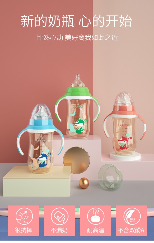神氣果果PPSU奶瓶 新款粉色產品展示
