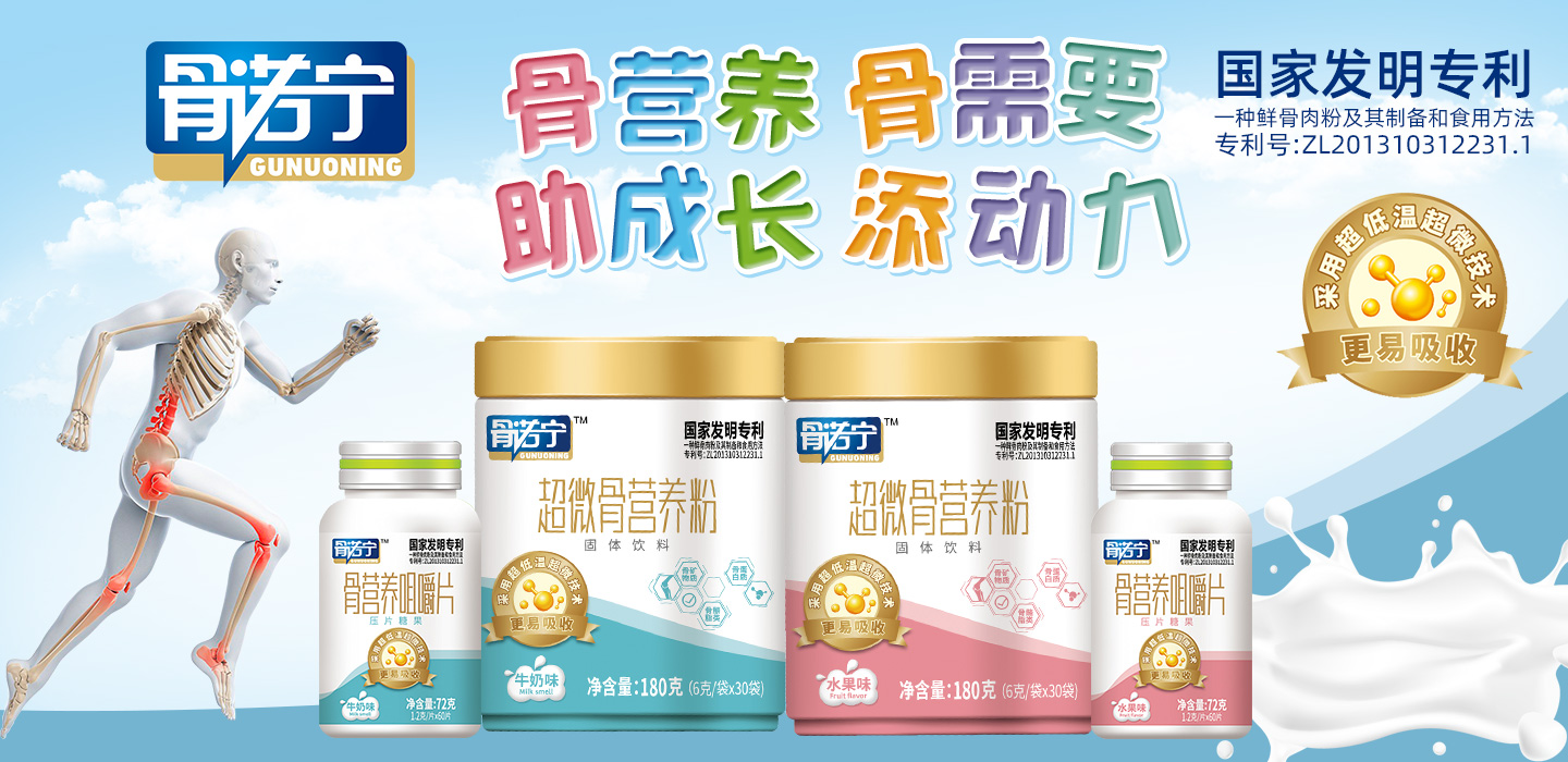 骨諾寧,骨健特醫生物科技(廣州)有限公司旗下品牌,該公司隸屬廣東骨全能生物食品科技有限公司,公司本著“全食品”的發展理念,立足健康產業,倡導高尚品質,以“全食品”開發利用為核心,堅持按“產、學、研”相結合的發展路線,為每一個人提供高科技含量、均衡營養成分的健康產品和科學營養解決方案。
