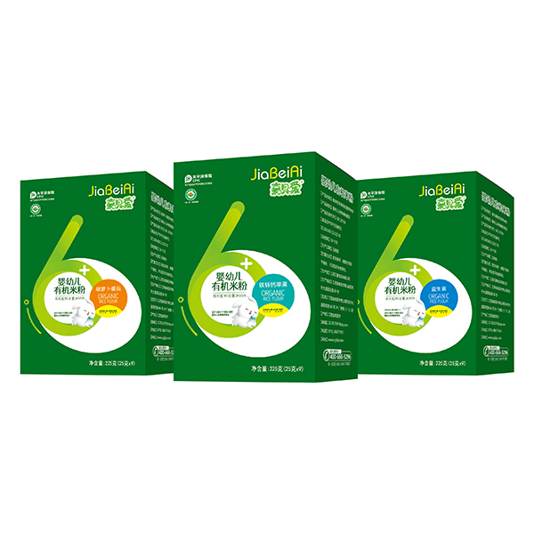 嘉唄噯嬰幼兒有機米粉盒裝益生菌鈣鐵鋅蘋果胡蘿卜番茄多種口味招商產品展示