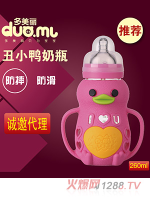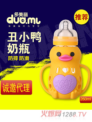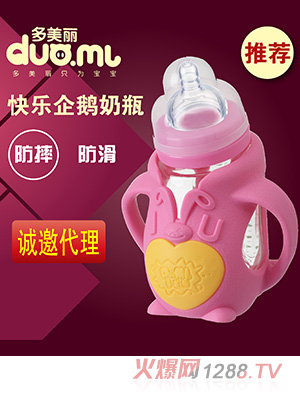 多美麗卡通奶瓶“萌萌的”外表來自外部的硅膠保護套。它擁有多個卡通形象,如丑小鴨、企鵝、貓頭鷹、小鱷魚、嘟嘟豬、MM豆等,而每一個卡通形象又有多達五種不同的顏色,豐富多彩,深受新一代寶媽們的喜愛。而且作為保護套的它們更具有防摔、防滑、防爆的特點,手感非常柔軟,bao--bao們可輕松抓握。
