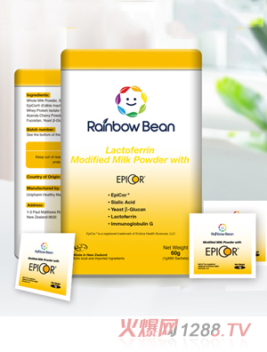 好消息,好消息,重磅好消息!新品乳鐵蛋白上市啦,諾,就是這款彩虹豆豆EpiCor調制乳粉,新西蘭聯合制藥自有品牌,根據中國膳食營養標準生產,高端品質,值得信賴。