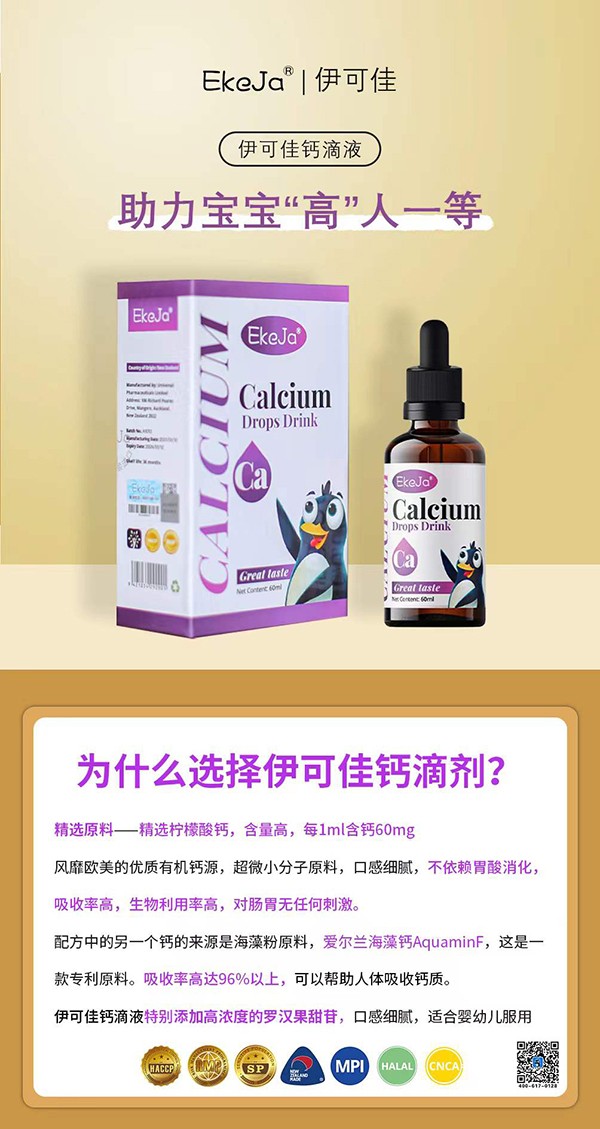 銘爍國際貿(mào)易(寧波)有限公司以高品質(zhì)守護(hù)好成長!伊可佳鈣滴液強(qiáng)勢來襲,現(xiàn)面向全國火熱招商中,好營養(yǎng)好口碑,強(qiáng)力賦能終端,門店上貨可千萬不要錯(cuò)過哦!