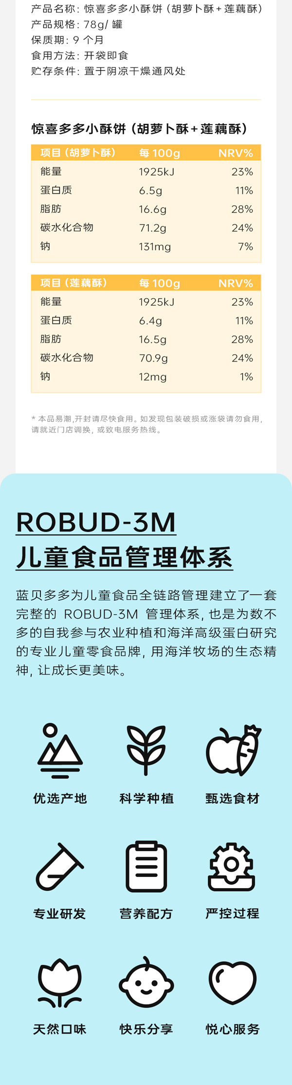 藍貝多多驚喜多多小酥餅(胡蘿卜酥+蓮藕酥),添加蓮藕&胡蘿卜,拒絕多余添加,雙拼口味,雙重滿足,低溫烘焙, 非油炸,保留食材中的營養成分,鎖住食材色香味,海藻糖更益牙,不會引起齲齒,獨立小包,定時定量。