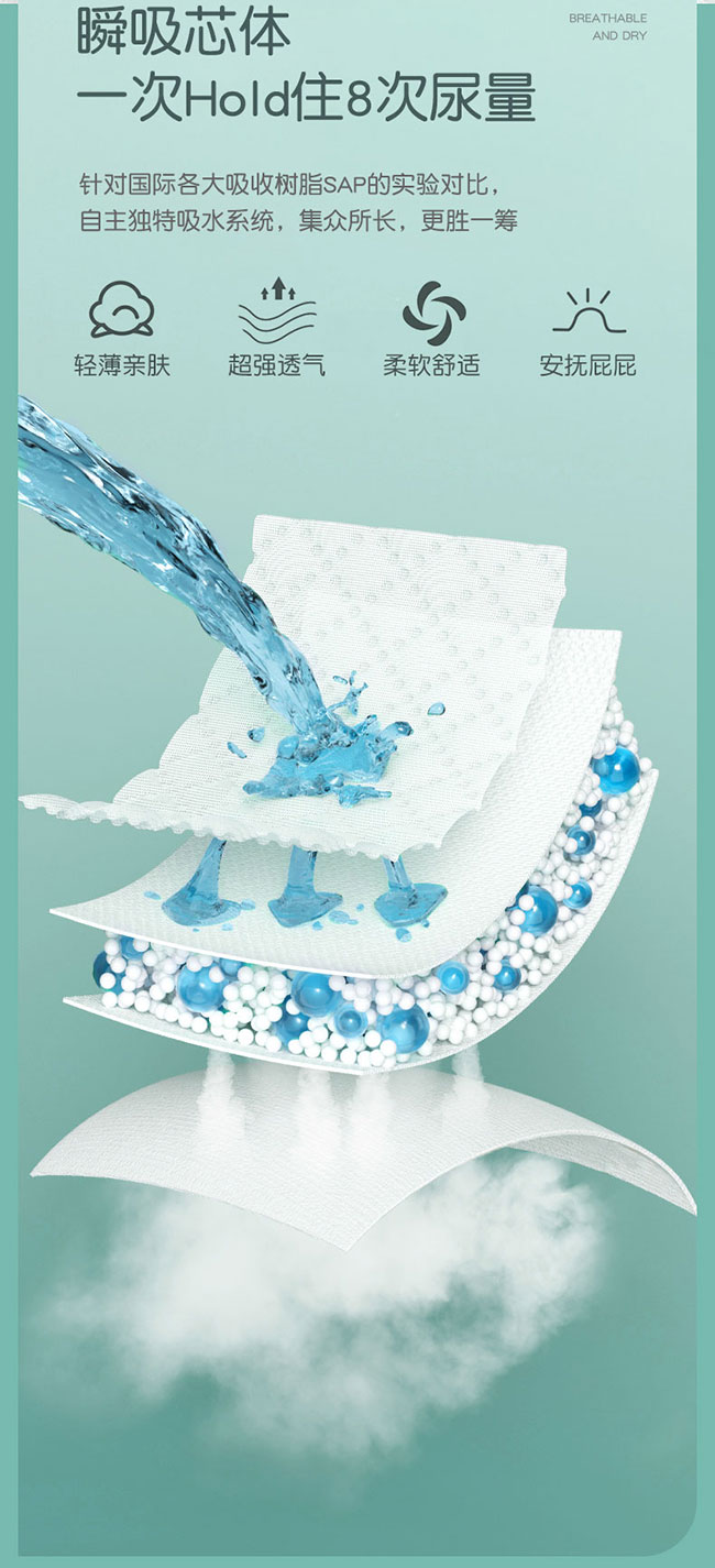 麥卡米卡暢氧超芯體學步褲,第4代“超芯”,更薄、更快、更干爽、更安全!獨創芯體U型槽,吸收更快,更大容量;超聲波壓合云朵凸點面層,減少皮膚接觸面,遠離紅屁股;大環腰體貼腰圍,防漏不勒紅;立體雙層防漏,護圍拉伸自動外翻設計,有效防止側漏;0.1cm超薄芯,一片尿褲反鎖整夜尿量;臺灣進口面層,立體打孔,輕松吸收,迅速把干;醫護級紙尿褲,多國檢測認證,安全放心。
