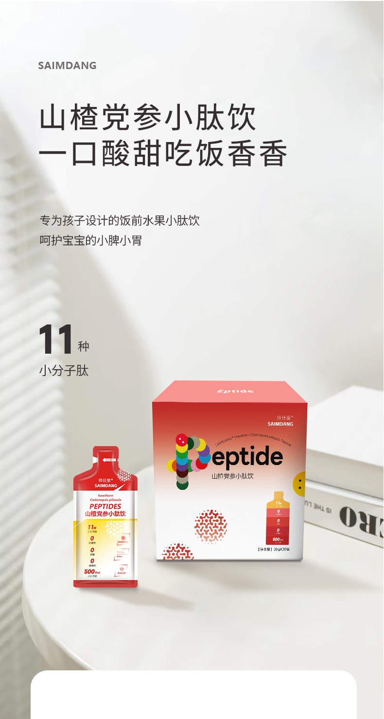 師任堂山楂黨參小肽飲,專為孩子設計的飯前水果小肽飲,脾胃好搭檔。靈感來自名方“四神湯”“四君子湯”,嚴選11種穿草本植物精華,黨參、雞內金、山藥、白扁豆、茯苓、陳皮、薏苡仁、麥芽、白芷、萊菔子、沙棘等,呵護寶寶的小脾小胃。小分子肽,孩子更易吸收,不給腸胃加負擔。免煮泡,開袋即飲,不添加香精防腐劑,每一口都健康。