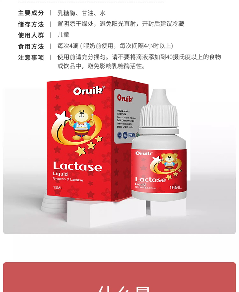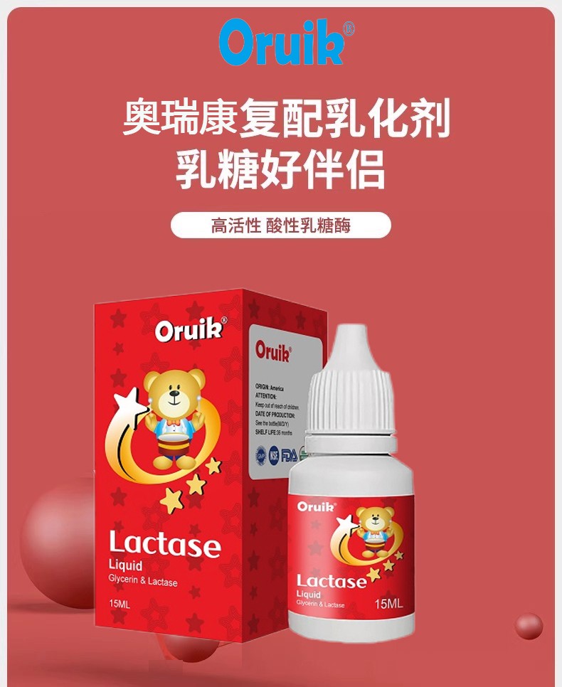 Oruik 奧瑞康品牌深耕兒童營養領域,此次推出的復配乳化劑(酸性乳糖酶)產品,源自美國原裝進口,從源頭保障品質。產品采用進口酸性乳糖酶,每 4 滴含乳糖酶 18000 FCC,配方科學且精純。同時,產品不含乳清蛋白等致敏成分,在兒童營養補充領域具備突出的市場競爭力。