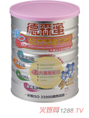 德森蜜優配方兒童奶粉適合三歲以上的bao--bao樹食用,營養價值高,配比科學,品質上乘,并且榮獲ISO22000國際認證,是媽媽放心的好產品。